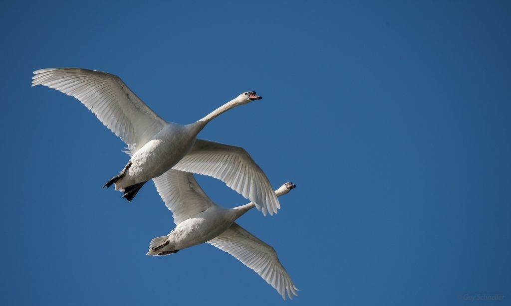Les grands groupes utilisent la formation en V. Le cygne tuberculé se pose généralement sur l'eau mais utilise à l'occasion la terre ferme ou la glace.